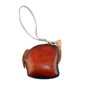 Handmade in Thailand, a brown leather coin purse in the shape of a horse